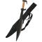Fourreau en toile noire avec sangle pour être porté dans le dos.