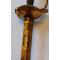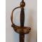 Forte monture en laiton doré dite à la suédoise qui a conservé une très grande partie de sa dorure, deux quillons inversés se terminant en boule, pommeau à côtes de melon, annelets et plateau en lyre légèrement asymétrique.