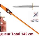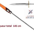 L’épieu « Le Traqueur » est destiné aux chasseurs de grand gibier en battue. De fabrication Française, il est robuste et composé d’une dague avec fourreau en cuir et d’une hampe de 120 cm.La dague est à simple tranchant avec une lame de 6 mm d’épaisseur, avec gouttière d’une longueur de 25,5 cm pour une longueur totale de 37,5 cm. La dague pèse 450 g. Elle est solide et fiable ! Elle a été conçue avec un système de double verrouillage afin d’éviter qu’elle ne bouge à l’intérieur du manche. Le manche est en aluminium et mesure 120 cm de longueur pour un diamètre de 32 mm. Il pèse 900 g.