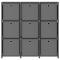 Étagère à 9 cubes avec boîtes Gris 103x30x107,5 cm TissuNotre étagère de présentation avec 9 boîtes ajoute un look moderne à votre décoration intérieure. Le support de stockage est fait de tissu et d'un cadre en acier, ce qui le rend fort et stable. Cette étagère autoportante a 9 compartiments ouverts, et chaque compartiment comprend une boîte en tissu, offrant un grand espace de rangement pour vos articles et gardant votre pièce bien rangée. De plus, l'étagère de décoration pour la maison est également l'endroit idéal pour afficher des livres, des objets de collection, des photos, des récompenses et de petites plantes en pot, etc. lorsque vous retirez les boîtes. Grâce à sa construction légère, cet organisateur de maison est également facile à déplacer.