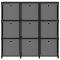 Étagère à 9 cubes avec boîtes Noir 103x30x107,5 cm TissuNotre étagère de présentation avec 9 boîtes ajoute un look moderne à votre décoration intérieure. Le support de stockage est fait de tissu et d'un cadre en acier, ce qui le rend fort et stable. Cette étagère autoportante a 9 compartiments ouverts, et chaque compartiment comprend une boîte en tissu, offrant un grand espace de rangement pour vos articles et gardant votre pièce bien rangée. De plus, l'étagère de décoration pour la maison est également l'endroit idéal pour afficher des livres, des objets de collection, des photos, des récompenses et de petites plantes en pot, etc. lorsque vous retirez les boîtes. Grâce à sa construction légère, cet organisateur de maison est également facile à déplacer.