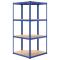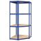 Étagère d'angle à 4 niveaux Bleu Acier et bois d'ingénierieCette étagère d'angle est un excellent choix pour le stockage résidentiel et commercial, offrant beaucoup d'espace pour garder tous les articles soigneusement organisés. Matériau robuste : l'étagère de rangement se compose d'un cadre en acier et de planches en bois d'ingénierie. Les cadres en acier garantissent robustesse et stabilité, tandis que le bois d'ingénierie offre solidité, stabilité et résistance à l'humidité.Forte capacité de charge : grâce au matériau épais, aux barres de renfort sous chaque étagère et au design des étagères sans boulons, cette étagère a une capacité de charge suprême.Rangement flexible : les niveaux sont réglables en hauteur. Ainsi, l'étagère offre un grand espace de rangement pour tous les articles que vous souhaitez stocker et permet de garder votre espace toujours propre et bien organisé. Remarque :Chaque produit est livré avec un manuel de montage dans la boîte pour un montage facile. Attention :Afin d'éviter qu'il ne bascule, ce produit doit être utilisé avec le dispositif de fixation murale. (la livraison ne contient pas le dispositif de fixation au mur).