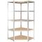 Étagère d'angle 5 niveaux Argenté Acier et bois d'ingénierieCette étagère d'angle robuste est un excellent choix pour le stockage résidentiel et commercial, offrant beaucoup d'espace pour garder tous les articles soigneusement organisés. Matériau robuste : l'étagère de rangement se compose d'un cadre en acier et de planches en bois d'ingénierie. Les cadres en acier garantissent robustesse et stabilité, tandis que le bois d'ingénierie offre solidité, stabilité et résistance à l'humidité.Haute capacité de charge : grâce au matériau très épais, aux barres de renfort sous chaque étagère et au design des étagères sans boulons, cette étagère très résistante a une capacité de charge suprême.Rangement flexible : les niveaux sont réglables en hauteur. Ainsi, l'étagère offre un grand espace de rangement pour tous les articles que vous souhaitez stocker et permet de garder votre espace toujours propre et bien organisé. Remarque :Chaque produit est livré avec un manuel de montage dans la boîte pour un montage facile. Attention :Afin d'éviter qu'il ne bascule, ce produit doit être utilisé avec le dispositif de fixation murale. (la livraison ne contient pas le dispositif de fixation au mur).
