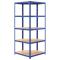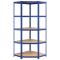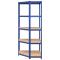 Étagère d'angle à 5 niveaux Bleu Acier et bois d'ingénierieCette étagère d'angle est un excellent choix pour le stockage résidentiel et commercial, offrant beaucoup d'espace pour garder tous les articles soigneusement organisés. Matériau robuste : l'étagère de rangement se compose d'un cadre en acier et de planches en bois d'ingénierie. Les cadres en acier garantissent robustesse et stabilité, tandis que le bois d'ingénierie offre solidité, stabilité et résistance à l'humidité.Forte capacité de charge : grâce au matériau épais, aux barres de renfort sous chaque étagère et au design des étagères sans boulons, cette étagère a une capacité de charge suprême.Rangement flexible : les niveaux sont réglables en hauteur. Ainsi, l'étagère offre un grand espace de rangement pour tous les articles que vous souhaitez stocker et permet de garder votre espace toujours propre et bien organisé. Remarque :Chaque produit est livré avec un manuel de montage dans la boîte pour un montage facile. Attention :Afin d'éviter qu'il ne bascule, ce produit doit être utilisé avec le dispositif de fixation murale. (la livraison ne contient pas le dispositif de fixation au mur).