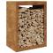 Étagère à bois 60x40x80 cm acier résistant aux intempériesCe support pour bois de chauffage est une solution idéale pour ranger proprement votre bois de chauffage. Matériau durable : l'acier résistant aux intempéries est anticorrosif de par sa nature même. Il développe une couche protectrice contre la corrosion dès qu'il est exposé aux conditions atmosphériques. Il n'est donc pas nécessaire de le peindre. Cela vous permet d'économiser sur les coûts d'entretien et de réparation. La couleur brune distinctive de l'acier vieillissant attirera certainement les regards. Enfin, l'acier résistant aux intempéries est exceptionnellement durable et résiste à l'épreuve du temps.Grand espace de rangement : ce support à bûches peut contenir suffisamment de bûches pour réapprovisionner le feu à tout moment, afin que vous puissiez toujours rester au chaud en hiver.Bois au sec : le portant de bois maintient les bûches au-dessus du sol, ce qui permet une meilleure circulation de l'air pour empêcher le bois de pourrir et pour sécher davantage le bois de chauffage.Porte-bûches essentiel : il s'agit d'un outil indispensable pour tous ceux qui possèdent une cheminée ou un brûleur à bûches afin de conserver le bois de chauffage collecté et facilement accessible. Bon à savoir :Ce produit n'est pas encore rouillé et a une couleur métallique normale lorsque vous le recevez, mais la rouille se développera au fil du temps. Vous pourriez accélérer le processus de rouille en le pulvérisant avec de l'eau savonneuse et de l'eau salée. Pour que vos vêtements ne soient pas tachés, évitez tout contact avec la couche de rouille qui se développe.