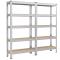 Ces deux étagères robustes en acier et panneaux MDF offrent une solution de rangement solide et polyvalente. Chaque niveau peut supporter jusqu'à 130 kg, ce qui permet de stocker sans souci peintures, outils, accessoires de fitness ou matériel encombrant.