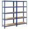 Étagères de rangement à 5 niveaux 2 pcs Bleu Acier et boisCes étagères de rangement sont un excellent choix pour le stockage résidentiel et commercial, offrant beaucoup d'espace pour garder tous les articles soigneusement organisés. Matériau robuste : l'étagère de rangement se compose d'un cadre en acier et de planches en bois d'ingénierie. Les cadres en acier garantissent robustesse et stabilité, tandis que le bois d'ingénierie offre solidité, stabilité et résistance à l'humidité.Capacité de charge solide : grâce au matériau épais, aux barres de renfort sous chaque étagère et à la conception de l'étagère sans boulons, cette étagère de rangement pour garage a une grande capacité de charge.Rangement flexible : chaque étagère de rangement peut être divisée en deux petites étagères séparées. De plus, les niveaux sont réglables en hauteur. Ainsi, l'étagère offre un grand espace de rangement pour tous les articles que vous souhaitez stocker et permet de toujours garder votre espace propre et bien organisé. Attention :Pour éviter qu'il ne bascule, ce produit doit être utilisé avec le dispositif de fixation murale (non fourni).