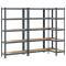 Étagères de rangement 5 niveaux 3 pcs acier bois d'ingénierieCes étagères de rangement sont un excellent choix pour le stockage résidentiel et commercial, offrant beaucoup d'espace pour garder tous les articles soigneusement organisés. Matériau robuste : l'étagère de rangement se compose d'un cadre en acier et de planches en bois d'ingénierie. Les cadres en acier garantissent robustesse et stabilité, tandis que le bois d'ingénierie offre solidité, stabilité et résistance à l'humidité.Capacité de charge solide : grâce au matériau épais, à la barre de renfort sous chaque étagère et à la conception de l'étagère sans boulons, cette étagère de rangement pour garage a une grande capacité de charge.Rangement flexible : chaque étagère de rangement peut être divisée en deux petites étagères séparées. De plus, les niveaux sont réglables en hauteur. Ainsi, l'étagère offre un grand espace de rangement pour tous les articles que vous souhaitez stocker et permet de toujours garder votre espace propre et bien organisé. Attention :Pour éviter qu'il ne bascule, ce produit doit être utilisé avec le dispositif de fixation murale (non fourni).