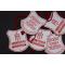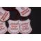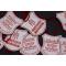 Étiquettes de contrôle d'usine Hörster pour dagues et épées. Fabriquées en papier avec une impression argentée et rouge.