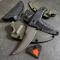 Le Kydex utilisé à une épaisseur de 2mm . Les œillets latéraux (diamètre interne de 4mm) permettent d'y placer différentes fixations ceinture ou de la Paracorde550 .
