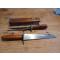 étui ancien Bois et Laiton avec couteau et fourchette , Haut : 7 cm , long et larg : 45,5 cm sur 6 cm , long lame : 19,5 cm , poids total : 600 g , trés bon ètat