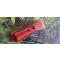 Fixé par deux rivets de maroquinerie, couleur noir, effet canon de fusil.