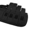Sur la paroi arrière de la chambre principale se trouve un système de stabilisation cousu qui permet de sécuriser le mousqueton pendant le temps du transport. Il est composé de ruban adhésif résistant, et trois boucles réglables avec velcro permettent d'adapter l'attache au type d'arme à porter.
