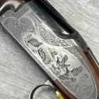 Ces canons sont de type Back Bored, c'est-à-dire sur allésés afin de limiter un peu le recul de l'arme et améliorer les gerbes avec les cartouches à bourre à jupe et godet. Il est livré avec cinq chokes amovibles Invector + (Cyl. ¼, ½, ¾, Full). La bande de visée est fine, 6 mm et ventilée. Une bande pleine relie les deux canons. La crosse en noyer turc de grade 3 poncé et huilé est superbe et met bien en valeur les gravures florales de la bascule.