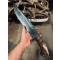 gigantesque couteau bowie d'artisan " le rustique " bois de cerf, acier carbone D2