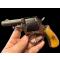 revolver 5 coups calibre 450. très compact plaquettes en corne. simple et double action. mécanique à revoir. la sa n accroche pas. la double action est trop ferme barillet tourne aléatoirement. bel état général.