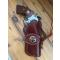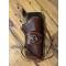 Cet holster est fabriqué dans l'esprit Western avec un cuir épais de qualité. Le cuir utilisé est un cuir Tannage Végétal Naturel qui a été teinté, graissé et protégé avec des produits de la marque FIEBING. Les coutures sont faites à la main avec du fil polyester tressé et ciré. L’étui est doublé en croute de cuir ce qui apporte une douceur au touché et un meilleur confort.