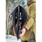 Mais ce sont surtout les nombreuses poches qui m’ont vraiment attiré. Il y a même des pictogrammes pour guider l’utilisateur. Nous allons ainsi retrouver une poche à soufflet assez épaisse pour le casque de protection auditive. Il y a une poche assez longue pour le modérateur de son. Cet accessoire est de plus en plus utilisé à la chasse et il n’est en effet pas toujours facile de le ranger dans le sac de battue.