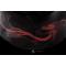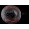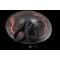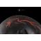 La partie interne est un laquage de deux dragons se faisant face en laque rouge sur un fond de laque marron avec un protège tête en tissu qui est relié par un cordon en soie bleu .