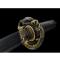 Matériaux et méthode de forgeage : Le Tsuba (garde) de l'épée est en alliage de zinc. Le Habaki (collier de lame) est une construction monobloc en laiton. Deux Seppas (entretoise) fixent le Tsuba. Le Tsuka (poignée) est en bois et est étroitement enveloppé de fausse peau de raie avec de la soie synthétique Ito. Le Fuchi (manchon) et le Kashira (capuchon) sont en alliage de zinc. La Tang de l'épée est fixée par deux Mekugi (peg). Deux Menuki en cuivre (ornement) se trouvent de chaque côté du Tsuka. Le saya (gaine) de l'épée est en bois dur. Sageo a été attaché autour du cuivre brillant Kurigaga (bouton) du fourreau. Le Koiguchi s'est durci. Epée de samouraï appropriée pour iaido / kendo supérieur. Support non fourni.