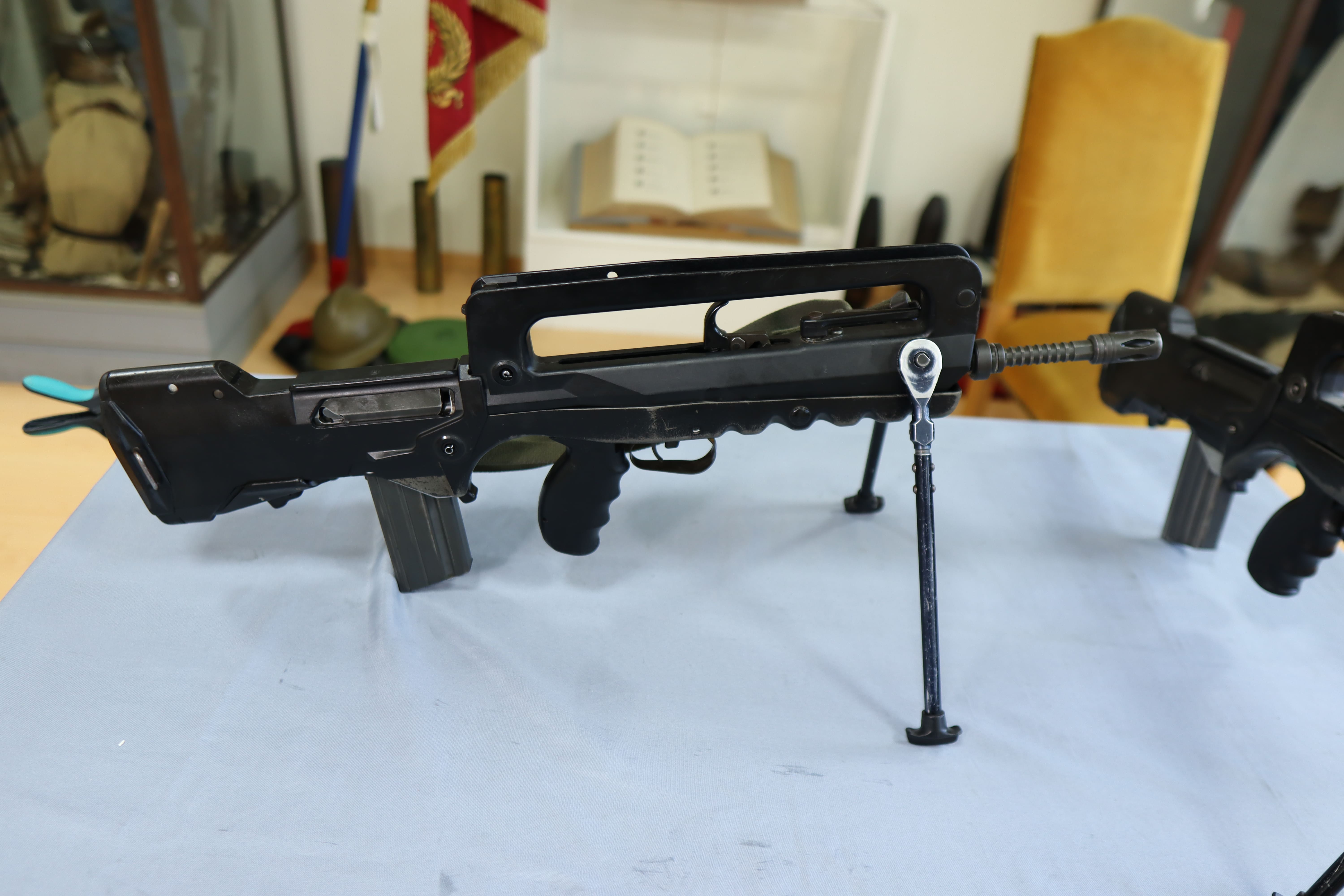 Le Fusil d’Assaut de la Manufacture d’Armes de Saint-Étienne, ou FAMAS, est adopté par l’armée française à la fin des années 1970. Chambré en 5,56 mm, il devient l’une des signatures visuelles de l’armée française durant les décennies suivantes. L’arme française utilise un ingénieux mécanisme de levier amplificateur d’inertie. Malgré ses évolutions notamment avec sa version FAMAS Valorisé, le bullpup française laisse sa place à partir de 2017 au HK416F à l’ergonomie plus classique.