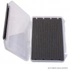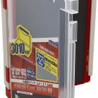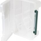 Le plastique utilisé par Meiho est un polyéthylène qui permet d’associer rigidité et une certaine souplesse pour éviter les fissures en cas de choc. La forme de la boite a été travaillée pour offrir des zones de rigidité en renfort, les charnières au nombre de deux sont discrètes mais solides et protégées par un pare choc installé au bout du couvercle. Le système de fermeture par loquet peut s’ouvrir facilement et se fermer avec une seule main, même mouillée. Elle n’est pas étanche mais protégera vos objets des projections d’eau inévitables à la pêche.