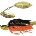 Peu employé en France ce leurre se révèle pourtant très efficace à la belle saison lorsque les carnassiers ont le regard dirigé vers la surface. Il s’agit d’une tête plombée en forme de poisson agrémentée d’une armature ressemblant à celle du spinnerbait mais ornée d’une hélice destinée à splasher en surface. C’est un leurre de réaction basé sur le bruit que font les éclaboussures et les ondes crées qui vont se transmettre loin dans l’eau. Il est parfait pour pêcher dans peu d’eau mais il faut que la zone soit exempte d’herbiers en surface sinon ces derniers vont se prendre dans l’hélice et neutraliser sa rotation. Très efficace pour la pêche du black bass en été, il se révèle très prenant sur les brochets en fin de journée en fin d’été dans les queues d’étangs.