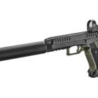 Mais, en plus, l’Alien est basé sur un système de canon fixe avec un cyclage par emprunt de gaz. Aucun verrou n’est donc nécessaire, ce qui limite encore le poids des pièces en mouvement. Le canon de 124mm étant fixe, il est monté complètement flottant (sans contact autre que le boitier) comme pour une carabine de précision par exemple. A l’instar de cette dernière, l’harmonie du canon (le « coup de fouet » au départ du coup) ne sera pas contrariée et il pourra exprimer son plein potentiel.