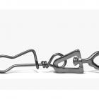 VMC, l’entreprise Française spécialiste incontestée dans le domaine des hameçons à mis tout son savoir faire en matière de façonnage et de trempe de fils d’aciers pour proposer aux pêcheurs toute une gamme d’agrafes. La pêche avec différents leurres demandant plus ou moins de mobilité, de résistance à la traction ou de facilité pour l’ouverture, les concepteurs de VMC proposaient déjà 5 modèles d’agrafes à leurres. Ce nouveau modèle particulièrement étudié pour positionner le leurre en bout d’agrafe manquait à la gamme. La forme en losange permet de bien guider le leurre tout en lui laissant une certaine liberté et cette forme permet lors d’une prise d’avoir toute la résistance possible grâce à son placement optimum. En outre le design permet une ouverture aisée même en hiver avec les doigts engourdis par le froid. L’ergot de maintien de cette agrafe a été particulièrement étudié puisque sa forme en V très ouvert permet un passage facilité dans les attaches des têtes plombées qui sont quelquefois difficiles à fixer avec des agrafes de type duolock. Construites en acier inox, ces agrafes de qualités permettent un usage marin et sont à même de résister à de belles prises en eaux douces.