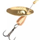 La Larva Inline Spinner de Spro est une nouvelle cuiller destinée avant tout aux rivières rapides ou aux ruisseaux ce qui explique qu’elle est équipée d’une palette dite « Inline ». Cette dernière n’est pas supportée par un étrier mais vois l’axe de la cuiller la traverser, ainsi elle se mettra plus rapidement en rotation et tirera moins sur la canne qu’une palette classique tout en tournant plus près de l’axe et en pêchant plus creux.