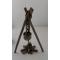 très bon état, comme neuf. Comprend 5 figurines : 2 soldats, un tronc d'arbre, un trépied avec chaudron, un feu de camp, le tout en étain