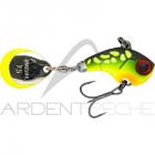 Il n'est plus besoin de présenter le Deracoup ! Ce leurre est proposé en trois tailles et poids différents avec un corps imitant un petit poisson avec un signal œil très présent. Il est muni d'une grosse palette de type ongle, Indiana, monté sur roulement à bille qui tourne à la moindre sollicitation et envoi de belles vibrations et éclairs dans l'eau. Tous les carnassiers en sont friands, de la perche au silure. C'est d'ailleurs parfois un petit souci lorsqu'un joli moustachu attrape ce petit leurre lorsqu'on l'anime avec une canne à perche…