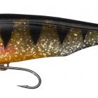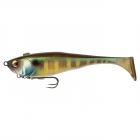 Ce leurre possède un corps massif, confectionné dans une gomme assez ferme. Il pousse de l'eau vers l'avant et sa queue au paddle bien vertical envoie aussi de bonnes vibrations dans l'eau pour alerter les carnassiers.