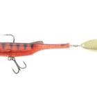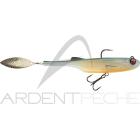 Ce shad est armé d'un hameçon simple de chez Owner, solide et piquant sur le dos et d'un triple de la même marque monté sur un roulement à bille afin de limiter les risques de décrochages. Le brochet ne pourra pas trop prendre appui sur le leurre pour se libérer avec des coups de tête.