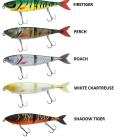 Mais revenons plus en détail sur ce Zilla Swimmer de Berkley. C'est un leurre articulé en quatre parties donc la nage est très réaliste. Quand il ondule avec sa nage en S on croirait vraiment un poisson. Il coule doucement et à l'horizontal dans la couche d'eau. Il va nager entre 0,5 et 1,5 m de profondeur mais il est possible de le lester grâce à un petit anneau positionné sous la gorge du leurre. En fixant un petit plomb poire spécifique on peut donc le faire couler plus vite et plus profondément. Il est équipé de deux hameçons triples Fusion 19 de Berkley très piquants.