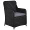 lot de 2 Chaises d'extérieur avec coussins Résine tressée NoirNotre ensemble de fauteuils confortables en résine tressée est la combinaison parfaite de style et de fonctionnalité. L'ensemble deviendra sûrement le point central de votre jardin ou patio ! Les chaises sont fabriquées en résine tressée, légère, résistante à l'eau, facile à nettoyer et conçue pour être utilisée à l'extérieur toute l'année. Les cadres en acier enduit de poudre assurent aux sièges une grande stabilité et une durabilité accrue. La forme ergonomique et les coussins épaississement rembourrés offrent un confort d'assise optimal. Les housses de coussins en polyester ne nécessitant que peu d'entretien peuvent être facilement enlevées et lavées. Les chaises sont faciles à assembler. La livraison comprend 2 fauteuils et 2 coussins de siège. Remarque : Nous recommandons de recouvrir les chaises de jardin pendant la pluie, la neige ou le gel. Maximum 110 kg par siège. Soyez conscient du risque de feux ouverts et d'autres sources de forte chaleur à proximité du produit.