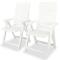 lot de 2 Chaises inclinables de jardin Plastique BlancCes chaises de jardin résistantes aux intempéries seront un excellent ajout à votre jardin ou patio. Matériau durable : les chaises inclinables sont en plastique durable, ce qui les rend résistantes aux intempéries et faciles à nettoyer.Dossier réglable : les dossiers des chaises disposent de 4 positions d'inclinaison, de sorte que vous pouvez toujours trouver la position la plus confortable.Facile à déplacer : elles sont également légères, ce qui les rend faciles à déplacer.Design pliable : les chaises peuvent être pliées pour économiser de l'espace lorsqu'elles ne sont pas utilisées. La livraison comprend 2 chaises. Maximum 110 kg par siège.