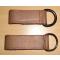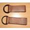 2 passants de ceinturon français en cuir fauve et anneau métallique peint en noir , un passage de ceinturon à 40 mm et l'autre à 50 mm , même largeur 23 mm