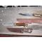 Lot de deux couteaux avec lames gravées à l'eau forte .polie miroir traitées rasoir très tranchantes . Longueur 15,1cm. épaisseur 2mm. Longueur totale de celui avec la garde travaillée et le pommeau en laiton à tête de mouflon 30,4cm. Bonne prise en main pour les deux. Celui qui a la lame percée longueur de lame 15cm,épaisseur de lame 1,5mm. Longueur totale 27cm. regardez les photos ,posez des questions ,retour refusé