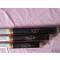 3 sabres japonais , katana,wakizashi et tanto . Les lames sont en acier inoxidable 440 ; je ne les ai pas affûtées par sécurité mais on peut le faire sans problème . Les foureaux et les manches sont en bois laqué noir avec motif de dragon . La tige de la lame traverse la poignée et est serrée à l'arrière par un écrou ; une bague en cuivre la recouvre , bague que l'on retrouve à chaque extrémité du fourreau . Les longueurs des lames sont 69 ,49 et 29 cm avec une épaisseur de 5MM . Les longueurs totales sont 101 , 78 et 53 cm . Seuls défauts; quelques petits éclats de peinture sur le fourreau du sabre et un petit accroc sur la lame qui peut être très facilement meulé (voir photos) . Personellement , je ne m'en suis servi pratiquement que pour la décoration .