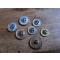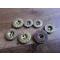 lots x 7 boutons plat / divers dim 16 x3 mm / dim 12 mm x2 unique paris / "" dim 16 mm x1 au bon patriote lille ""+ 1 divers traces d usage détail photos