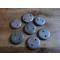 lots de 7 plombs de couturières pour lester le bas des jupes dim entre 22 & 25 poids unitaires entre 12 & 18 gm "" quatres avec marquages chiffres traces d'usages détail photos