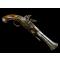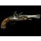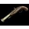 superbe pistolet à silex tromblon. etat parfait !! monté fer. platine fonctionnelle. mécanisme fermé fils d argent incrustés dans le bois. longeur 31 cm.