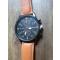 montre homme quartz dim 43mm  cadran fond noir bracelet cuir marron  pile neuve état fonction  détail photos