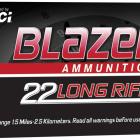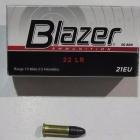 Cette cartouche 22 LR Round nose c'est-à-dire à tête ronde en plomb pèse 38 gr, soit 2,46 grammes. Elle est hyper classique et le fabricant annonce une vitesse moyenne de 376 m/s à la bouche du canon. CCI Blazer insiste aussi sur la qualité d'amorçage et sur la propreté de cette munition en indiquant qu'elle convient très bien aux armes semi-automatiques chambrées en 22 Long Rifle.