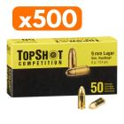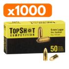 Les munitions 9 mm Luger TopShot Competition sont encartouchées chez un sous-traitant en République Tchèque pour la marque allemande Frankonia sous la référence V311472. Elles sont conditionnées par 50 munitions (rangées une à une dans un support en plastique noir) dans une boite en carton dont le box-art est facilement reconnaissable par ses couleurs jaunes et noires.