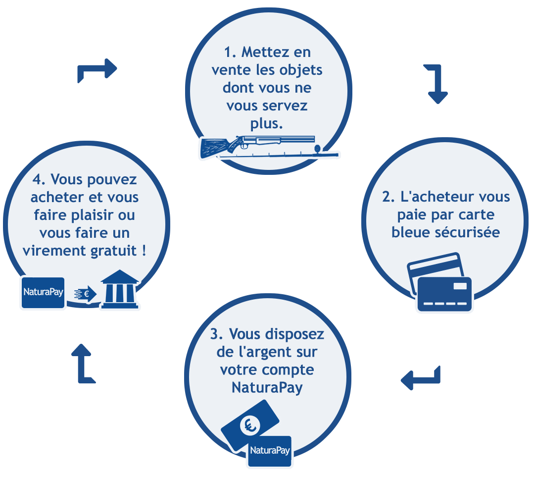 Lorsque vous vendez un objet et que l'acheteur vous paye par carte bleue, l'argent est crédité sur un compte bancaire NaturaPay qui est ouvert automatiquement à votre nom.
