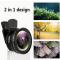 Kit d'objectif de téléphone 2 en 1 avec grand angle de 0,45x et macro, clip-on , adaptateur universel pour smartphones pour les voyages, les photos de natures ou les photos de groupe