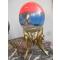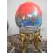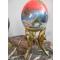 Oeuf d'aurtruche peint  monté  sur  support  dauphins  en laiton