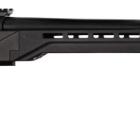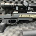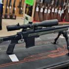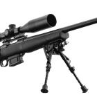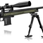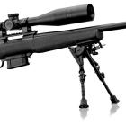 La carabine à verrou est montée sur une crosse poutre BML entièrement réglable avec un busc qui peut s'adapter à chaque morphologie de tireur, quelle que soit la position de tir. Cette crosse est confectionnée en alliage d'aluminium. Elle est de type M4 et livrée avec 6 inserts pour faire varier la longueur sur 2" par pas de 1/8". La poignée pistolet est caoutchoutée et possède un profil anatomique pour bien positionner les doigts. L'arme est chambrée en calibre 308 Winchester, idéal pour ce type de tir à longue distance. Le canon lourd de 24'' (diamètre extérieur à la bouche de 26 mm) est fileté à son extrémité avec un pas de 5/8x24 pour montage d'un frein de bouche ou d'un modérateur de son. La carabine est livrée avec un frein de bouche Howa 3T. Le chargeur amovible contient 10 munitions. Un rail picatinny est fixé sur le dessus du boitier de culasse et reçoit un montage à colliers de 30 mm Match Mounts. La lunette est un modèle Diamond 6-24x50 Long Range de Nikko Stirling avec un réticule Hold Fast. Cette lunette posssède des tourelles tactiques verrouillables, 1 clic = 1/4 MOA, tourelle d'élévation graduée ou personnalisable. Le bipied est de chez Buffalo River, il est réglable en hauteur avec adaptateur M-Lock Rail.